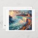 Lebhafte Wirbel und lebhafte Farben zeigen einen Wasserfall neben einer lebendigen Stadt. Die Szene erfasst das dynamische Wechselspiel von Natur und urbanem Leben, mit immenser Energie und Bewegung.