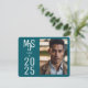 Verbessern Sie Ihre Graduierungsankündigungen mit diesen einzigartigen Einladungen. Fügen Sie einfach das Monogramm, das Foto und das Unterrichtsjahr des Absolventen auf die Vorderseite und die Einzelheiten Ihrer Abschluss Zeremonie und Feier Party (auf der Rückseite). Zurück zeigt ein individuelles Adlergraddesign. Einfach zu bedienende Vorlage. Dunkle aquamarine blaue Farben mit Adlergrad-Design. In der horizontalen (oder landschaftlichen) Ausrichtung angezeigt. Verwenden Sie die Vorlage, um Ihre neuen Graduierungseinladungen zu personalisieren.