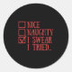 Nice Naughty I Swear I Tried Funny Xmas Runder Aufkleber