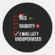 Nice Naughty Left Unsupervised Funny Christmas Runder Aufkleber