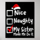 Nice Naughty My Sister Made Me Do It Funny Christm Poster