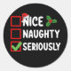 Nice Naughty Serious Weihnachtsliste Runder Aufkleber