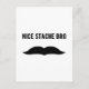 Unglaublich witzig Satz: "Nice Stache Bro", geschrieben in einem einfachen, schlanken, schwarzen Schriftart über einem großen schwarzen hardcore aus den 1970er Jahren Polizist Schnurrbart. Dieses Design ist die perfekte Mischung aus dem berüchtigten "Cool story bro" und dem beliebten, hausgemachten Gesichtsdekor.