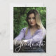 Foto vorne und hinten... Eine lässige Ankündigung des Abschlusses mit Mortarboard Graduiertenkappensymbol, perfekt für den Highschool- oder Uni-Abschluss. Moderne minimalistische Typografie, lässige elegante Schrift "Graduate" Schrift. Erleben Sie diese besonderen Momente des Wachstums und lächeln Sie Freude und Jugend für immer. Laden Sie ein volles Portrait-Mode-Cover-Foto des Absolventen auf der Vorderseite, ein Landschaftsorientierungsfenster-Foto sowie relevante Details der Abschlussfeier auf der Rückseite hoch. Schattet automatisch die perfekten Bereiche des Bildes.