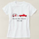 Ein roter LKW, der einen lustigen roten und weißen Anhänger oder einen Wohnwagen weg auf einer Campingsreise zieht. Mit dem Zitat im Text nicht alles, den Wander verloren sind. Entworfen durch Lerchen-Entwürfe