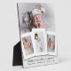 Die moderne Babystats Foto Collage Plaque verfügt über eine Landschaft und drei portraitorientierte Fotos. Fügen Sie einfach den Namen Ihres Kindes, den Geburtsort, das Datum, das Gewicht und die Länge der Vorlage hinzu. Custom Baby Birth Stats Vier Foto Collage Plaque .