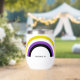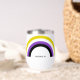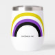 Cooler, benutzerdefinierter, nichtbinärer Weintumbler mit der nichtbinären Stolz-Fahne, die wie ein Regenbogen für einen Freund der Geschlechterflüssigkeit geformt ist. Niedliches nichtbinäres Geschenk.