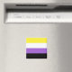 Die nichtbinäre Flagge wurde 2014 von Kye Rowan, dem Aktivisten, erstellt. Jede Stripfarbe stellt verschiedene Typen nichtbinärer Identitäten dar: Gelb für Menschen, die sich außerhalb der Geschlechterbinäre identifizieren, weiß für nichtbinäre Menschen mit mehreren Geschlechtern, lila für solche mit einer Mischung aus männlichen und weiblichen Geschlechtern, und schwarz für weibliche Altersgenossen.