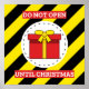 Eine Illustration einer einfachen roten Geschenkboxen mit dem Text "Nicht bis Weihnachten öffnen", und schwarz-gelb gestreiften Hintergrund. Geschenke sind die beste Art, Ihre Familie und Freunde überraschen zu lassen. Dieses Design ist gut zu bedrucken auf einem Aufkleber oder Geschenkverpacker für die Geschenke unter dem Weihnachtsbaum.