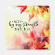 Christlicher Magnet zeigt eine einfache, minimale Wasserfarbe mit roten und gelben Herbstblättern. Es enthält ein inspirierendes Zitat von Bible Verse Philippians 2:13: "Nicht durch meine Stärke, sondern durch seine."