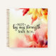 Christliches personalisiertes Notizbuch, Zeitschrift zeigt eine einfache, minimale Wasserfarbe mit roten und gelben Herbstblättern. Es enthält ein inspirierendes Zitat von Bible Verse Philippians 2:13: "Nicht durch meine Stärke, sondern durch seine." Passen Sie die Rückseite mit einem Namen oder Details Ihrer Wahl an.