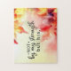 Das christliche Puzzle zeigt eine einfache, minimale Unterwasserfarbe mit roten und gelben Herbstblättern. Es enthält ein inspirierendes Zitat von Bible Verse Philippians 2:13: "Nicht durch meine Stärke, sondern durch seine."