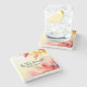 Christlicher Untersetzer aus Stein zeigt eine einfache, minimale Wasserfarbe mit roten und gelben Herbstblättern. Es enthält ein inspirierendes Zitat von Bible Verse Philippians 2:13: "Nicht durch meine Stärke, sondern durch seine."
