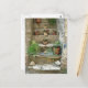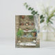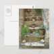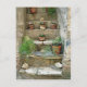 Postkarte mit einem Bild von Terracotta-Blume mit Geranien- und Spargelbesen, die an einer alten Treppe in der antiken Hügelstadt Soriano nel Cimino in der Toskana Region von Italien schmücken.