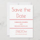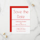 Save the Date mit einem sauberen, roten und weißen Design. Dies ist Teil eines Set zur Hochzeitseinladung.