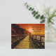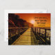 Eine wunderschöne, inspirierende Postkarte zeigt die untergehende Sonne über einer Holzbrücke, die vom Meer umgeben ist und mit Bibel Verse Luke 22:42. Der innere Gruß kann für eine leere Karte modifiziert oder gelöscht werden._