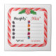 Nutzen Sie diese individuelle Kachel als Trivet oder um Ihre Urlaubsstimmung zu verbessern. Hier ist eine niedliche Weihnachtsscheckliste mit Pfefferminz und Süßspeisen, die dem Weihnachtsmann helfen soll, den Überblick zu behalten, wer Naughty ist oder wer Nizza ist! Denken Sie daran... Die Naughty bekommen KOHLE. Die Nizza bekommen PRÄSENTE! Eine lustige Touch für Ihre Zuhause- oder Bürofeier!