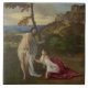 Dieses Design zeigt ein Gemälde des italienischen Malers der Renaissance Titian (1488-1576), der oft als das wichtigste Mitglied der Venezianischen Schule des 16. Jahrhunderts gilt. Es zeigt die biblische Episode im Johannisgospel, wo Mary Magdalene anfing, sich an Jesus zu klammern, als sie ihn nach seiner Auferstehung erkannte. Mit dem Ausdruck "Touch mich nicht" (im Lateinischen "noli me tangere") schlägt Jesus vor, dass, sobald seine Auferstehung vollbracht ist, die Verbindung zwischen Menschen und seiner Person nicht mehr physisch sein darf, sondern eine spirituelle Verbindung des Glaubens sein muss. Das ursprüngliche Kunstwerk wurde 1514 gemalt, und seit dem 19. Jahrhundert ist in der Sammlung der National Gallery in London.