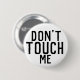 Schwarzes GROTESK aller Kappen-Schriftart auf weißem Knopf. Liest: "NICHT TUN TOUCH ICH"