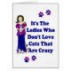 Dieser (nicht verrückte) Katzen-Damenentwurf nimmt einen Stand gegen den Stereotypen der mitfühlenden Frauenkatzeninhaber, wie einsam oder exzentrisch. Schließlich ist es die Leute in dieser Welt, die sich nicht für Tiere interessieren, die das wirkliche Aussenseiter sind. Das heißt, "es ist die Damen, die nicht Liebe-Katzen tun, die sind verrückt."