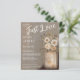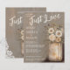 Nichts Besonderes, nur Liebe Florale Mason Jar Hochzeitseinladung mit RSVP-Informationen für eine weniger formelle Angelegenheit, sodass Sie keine separate Antwortkarte benötigen. Umarmen Sie eine charmante rustikale Ästhetik für Ihren besonderen Tag mit dieser "Just Love" Hochzeitseinladung. Mit einer wunderschönen Aquarell-Blumenanordnung, die aus einem antiken Mason-Glas auf einem verwitterten Holzhintergrund überquillt, schafft diese Einladung einen warmen und einladenden Ton für Ihre rustikale Landhochzeit. Der "Nichts Besonderes"-Untertitel und die elegante Schrift für "Just Love" erfassen perfekt ein entspanntes, aber romantisches Gefühl. Es ist eine ideale Wahl für Paare, die eine Scheunenhochzeit, eine Farmhouse-Feier oder ein beliebiges rustikales Thema planen und einen Hauch von natürlicher Schönheit und herzlicher