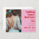Nichts extravagant nur Liebe Foto fett Save the Date mit hellen rot und pastellfarben magenta.