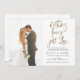 Gerade verheiratete Ankündigung und Empfang nur Einladung mit "Nichts extravagant nur Liebe" in einem lustigen Gold-Skript. Teilen Sie Ihren Freunden und Ihrer Familie mit, dass Sie an einer privaten Zeremonie verheiratet waren und laden Sie sie zu einer Hochzeitsfeier ein. Passen Sie Ihre Daten und Ihr Foto an.