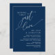 Wunderschöner moderner Lässiger Minimal, Navy Blue Script Schriftart, Hochzeitsankündigung, Dinner und Party Celebration, Einladungskarte (Nichts Extravagant, Nur Liebe). Dies ist ideal für Ihren Hochzeitsempfang und Ihr Party nach der Hochzeit. Fügen Sie Ihre Daten in passender Schriftart / Schrift hinzu. #TeeshaDerrick