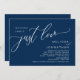 Mit unserer modernen marineblauen Hochzeitsfeier-Einladungskarte "Nichts extravagantes nur Liebe" geben Sie Ihr Glück immer wieder bekannt. Diese Einladung ist für Paare gedacht, die ihre Liebe fortsetzen und ein perfektes Gleichgewicht von Eleganz und Charme schaffen. Sie bietet den Rahmen für ein unvergessliches Erlebnis. Das moderne Skriptdesign verleiht Ihrem Tag eine Touch zeitloser Anmut. Entworfen von der talentierten TeeshaDerrick, ist diese Einladung ein stilvoller Ausdruck Ihrer anhaltenden Liebe.