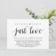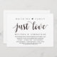Mit unserer modernen Skriptdesign Hochzeitsausgabe-Party Einladung kündigen Sie Ihr Glück immer wieder stilvoll an. Unsere "Happily Ever After, Nothing Extravagant, Just Liebe, Invitation card" ist ideal für Paare, die sich entschieden haben, ein Party zu feiern und wollen, um ihre Gewerkschaft zu feiern. Mit seinem ausgeklügelten und spielerischen Design wird diese Einladung den Ton für ein unvergessliches Ereignis Set. Die Einladungskarte ist minimalistisch mit einem Schwarz-Weiß-Stil gestaltet und verleiht Ihrem Fest eine Touch zeitloser Eleganz. Designed by TeeshaDerrick