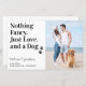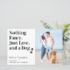 Lass deinen Best Dog mit diesem modernen und eleganten 'Nothing Extravagant, Just Liebe, and a Dog' Haustier Hund Save the Date Postkarten bekannt geben. Diese Budget Hochzeitskarten haben eine Umschlagoption. Passen Sie mit Ihrem Lieblings-Verlobung-Foto, Hundes-Foto, oder Foto mit dem Hund , und personalisieren Sie mit Namen, Datum und Hochzeitsort. Die Einladungen zur Hochzeit sind ein Muss für Hundefreunde und Hundemütter! COPYRIGHT © 2020 Judy Burrows, Black Dog Art - Alle Rechte vorbehalten. Nichts Extravagant, nur Liebe Hund Hochzeit speichern das Datum