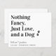Nichts Extravagant Nur Liebe und ein Hund! Lass deinen besten Hund verkünden deine Hochzeit mit diesem modernen und einfachen "Nichts Extravagant, Nur Liebe, und ein Hund" Haustiere Hund speichern die Dattelkarten. Diese budgetären Hochzeitseinladungen beinhalten keine Umschläge. In unserer Sammlung finden Sie passende A6-Umschläge oder unsere Postkarten-Option. Personalisieren Sie Ihre Daten mit Namen, Datum und Hochzeitsort. Diese Hochzeit speichern Sie das Datum Ankündigung wird ein Hit mit Ihrer Familie und Freunden. COPYRIGHT © 2020 Judy Burrows, Black Dog Art - Alle Rechte vorbehalten. Nichts Extravagant nur Liebe Hund speichern die Datumskarten