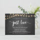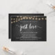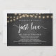 Schönes Nichts Extravagant, nur Liebe, Hochzeitsfeier Ankündigung / Einladungskarte, in rustikalen Bauernstube, String Lights Design. Dies ist ideal für Ihren Hochzeitsempfang und Ihr Party nach der Hochzeit. Fügen Sie Ihre Daten in passender Schriftart / Schrift hinzu. #TeeshaDerrick