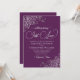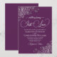 Diese schöne Hochzeitseinladung ist einfach, modern, elegant und lustig. Es zeichnet sich durch ein wunderschönes lila und silbernes Design aus, mit glänzenden Imitaten und Wirbel in den Ecken, und moderne Schriftzeichen, die ausdrücken: Nichts Extravagant, Just Liebe. Romantisch, klassisch und glänzend, aber auch skurril und fröhlich, ist diese Hochzeitseinladung perfekt für eine lässige oder formelle Zeremonie.