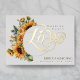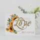 Elegante Goldfolienkalligraphie gepaart mit Aquarellsonnenblumen und klassischen Schriftart schafft eine faszinierende rustikale Hochzeitseinladung, die Ihre Gäste zu Liebe bringen werden! Design ist auf einer horizontalen Karte für ein modernes, organisiertes und leicht lesbares Aussehen. Dieses Design ist perfekt für Herbst-, Frühjahr- und Sommerhochzeiten.