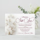 Diese romantische Hochzeitseinladung besticht durch ein traumhaftes Design mit einem strahlenden Anstrich an weißen Orchideen. Der bordeauxfarbene Text zeichnet sich durch moderne Schriftzeichen mit eleganten Schwänzen und Wimpern aus. Der Text lautet: "Nichts Extravagant, Just Liebe" mit Platz für alle wichtigen Details. Einfach, elegant, stilvoll und schick, ist diese Einladung eine wunderbare Möglichkeit, um Freunden und Familie fragen, sich an Ihrem besonderen Tag zu erfreuen.