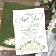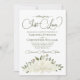 Diese wunderschöne Hochzeitseinladung besticht durch ein rustikales Blumendesign in Aquarelltönen mit handgemalten Rose und Blume in Weiß-, Elfenbein- und Cremetönen mit Eukalyptus-Blätter, Belebungs- und Grüntönen. Ganz oben stehen die Worte: "Nichts extravagant, Just Liebe", die in eleganten Schriftzeichen mit Wimpern und Schnörkeln geschrieben sind. Die Rückseite des Einladens ist eine marmorierte Salbei grün Farbe mit einem Blumenstrauß und Blätter mit einem Satin-Bogen verbunden.