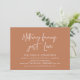 Nichts Extravagant, Just Liebe, Hochzeitsfeier Ankündigung und Party Feier Einladung Karte, in schönen lässigen Drehbuch, Kupfer Rost braun Thema. Dies ist ideal für Ihren Hochzeitsempfang und Ihr Party nach der Hochzeit.