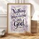 Bewundern Sie den Power des Glaubens mit diesem schönen typografischen Kunstdruck mit dem inspirierend Vers aus Luke 1:37. Das elegante Drehbuch in tiefem lila, mit zarten Aquarellblumen in Lavendel- und Goldtönen geschmückt, schafft ein ruhiges und aufregendes Design. Ideal, um eine Touch spiritueller Inspiration zu Ihrem Zuhause- oder Bürodesign hinzuzufügen.