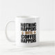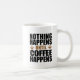 Nichts passiert, bis der Kaffee coole Tasse bekommt. Eine großartige Tasse für jeden Kaffeeliebhaber. Nichts wird erledigt, bis du dein Koffein hast! Brauchst du eine Tasse Junge, um deinen Tag zu beginnen?