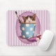 Entzückendes Kätzchen, das in einem blauen Tupfenbleistifttopf, gemalt vom Künstler Maryline Cazenave Nickerchen macht.