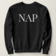 Schwarzer Pullover mit weißem Buchstaben Sprichwort Nickerchen. Für Leute, die Liebe nehmen Nickerchen, nappen, schlafen. Nickerchen Königinnen.