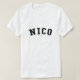 Nico! Ist Ihr Name Nico? Oder haben Sie einen Ehemann, einen Freund, ein männliches Familienmitglied oder einen Mann Freund genannten Nico? Wenn ja ist dieses "Fahnen" Shirt genau nach das Geschenk, dem Sie suchen! Die Ausrüstungsbeschreibungen "Nico" in gewölbter schwarzer Beschriftung über dem Kasten im klassischen Uni-Schriftart.
