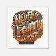 Eine visuell auffällige, motivierend Grafik mit dem Satz "Never Stopp Dreaming" in hellorangefarbener Typografie. Set vor einem soliden schwarzen Hintergrund, die lebhaften Farben und die Zierdetails machen die Komposition dynamisch und aufregend. Ein künstlerisches und motivierend Design, das perfekt für T - Shirt, Tasse, Servietten, Poster und Waren geeignet ist und kühne Schriftart und dekorative Elemente kombiniert, um Positivität inspirieren.