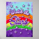 Sehen Sie sich die Sterne Niedliche bunte Poster mit inspirierendem Zitat an. Vintages Retro-Poster mit inspirierendem Sprichwort und positiver Botschaft, Sternen und Regenbogen.