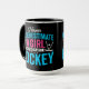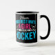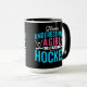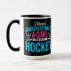 Text heiß rosa, hellblau und weiß mit Hockeypucks und Hockeyschläger liest Niemals Unterschätzen ein Mädchen, das Hockey spielt, ideal für den Hockeyspieler jeden Alters, der den Sport Liebe!