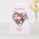 Eine romantische Geburtstagskarte. Ein Gemälde von Rose wird von einem vergoldeten goldenen Herz gerahmt. Gönnen Sie Ihrer Nichte einen Geburtstag mit einem hübschen Gemälde aus einem Strauß Rose.