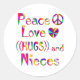 Teilen Sie die Liebe für Ihre Nichte mit diesem farbenfrohen Design mit einem Friedenszeichen, Herz und den Worten Peace Liebe Hugs and Nieces.
