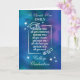 Feiern Sie Ihre Nichte mit einer personalisierten Abschluss-Karte mit ihrem Namen auf der Vorderseite! Das elegante Design zeigt eine inspirierend Botschaft über ihre Leistungen, Träume und die unbeirrbare Unterstützung rund um sie. Gerahmt durch eine Graduationskappe, Diplom und Sterne strahlt die knusprige weiße Schrift vor einem atemberaubenden Aquarellhintergrund aus Blau, lila und Grün. Dieser wunderschön angepasste Sake ist der perfekte Weg, um ihr Engagement zu würdigen und sie mit Ermutigung für die glänzende Zukunft zu versenden.
