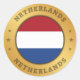 Die niederländische Fahne ist in einen gerundeten Goldring der Imitate eingeprägt. Das Wort "Niederlande" steht oben und unten im Design und hat einen gepressten Effekt. Das Paar von drei dekorativen Sternen zueinander, sind auch mit einem gepressten Effekt gestaltet.